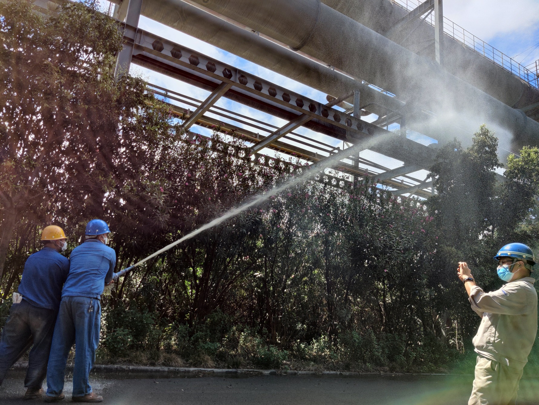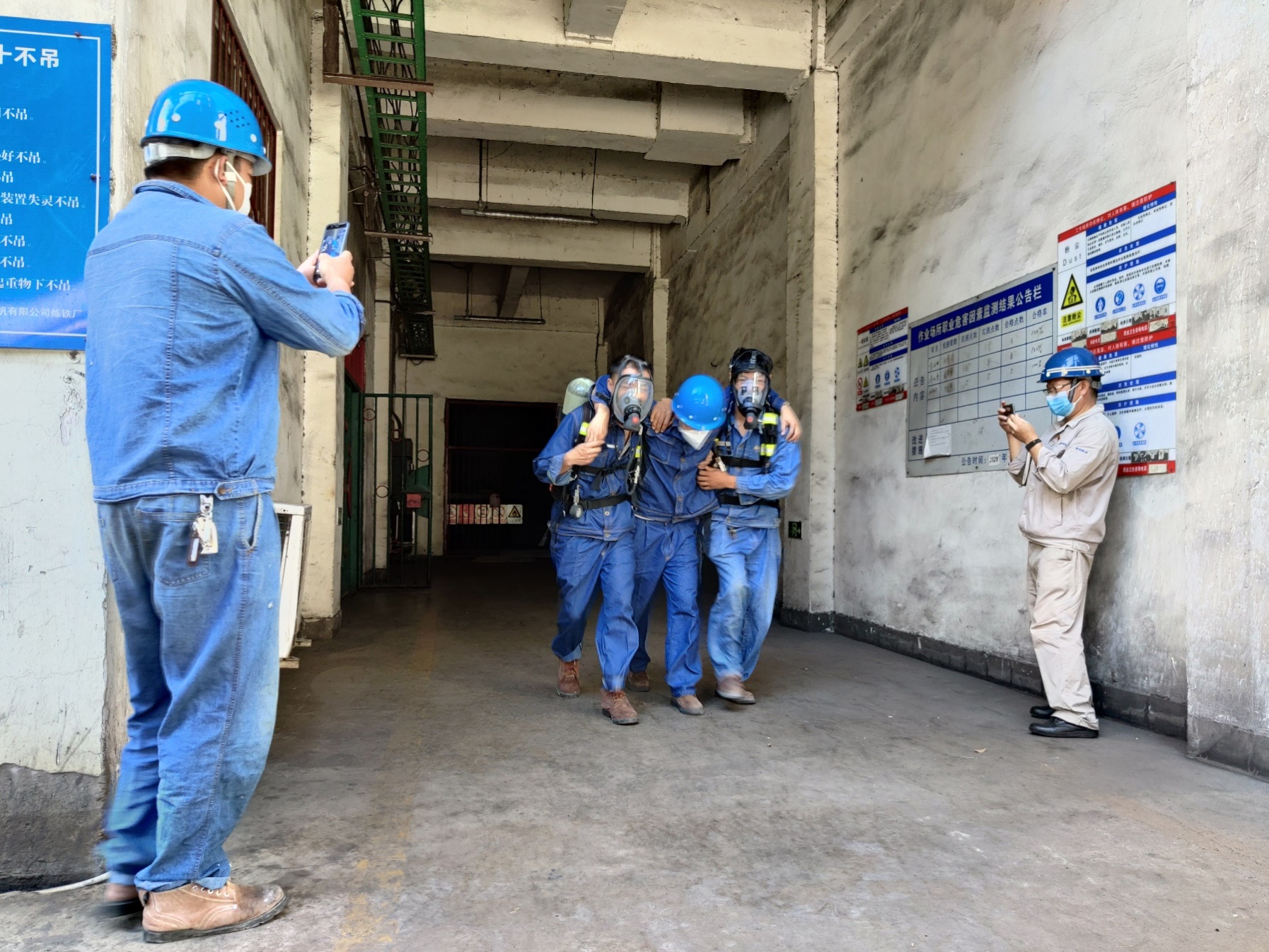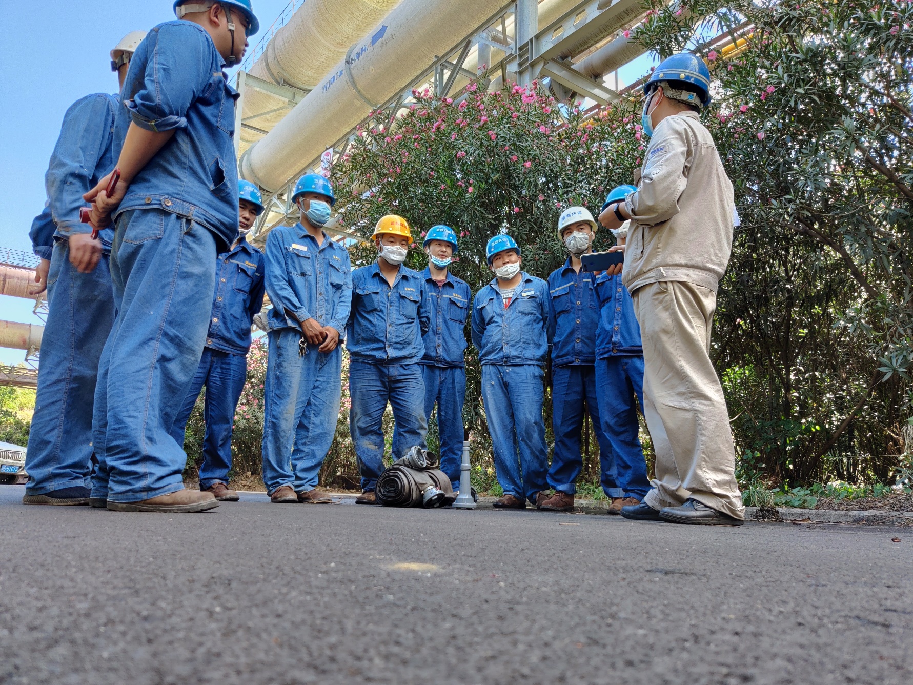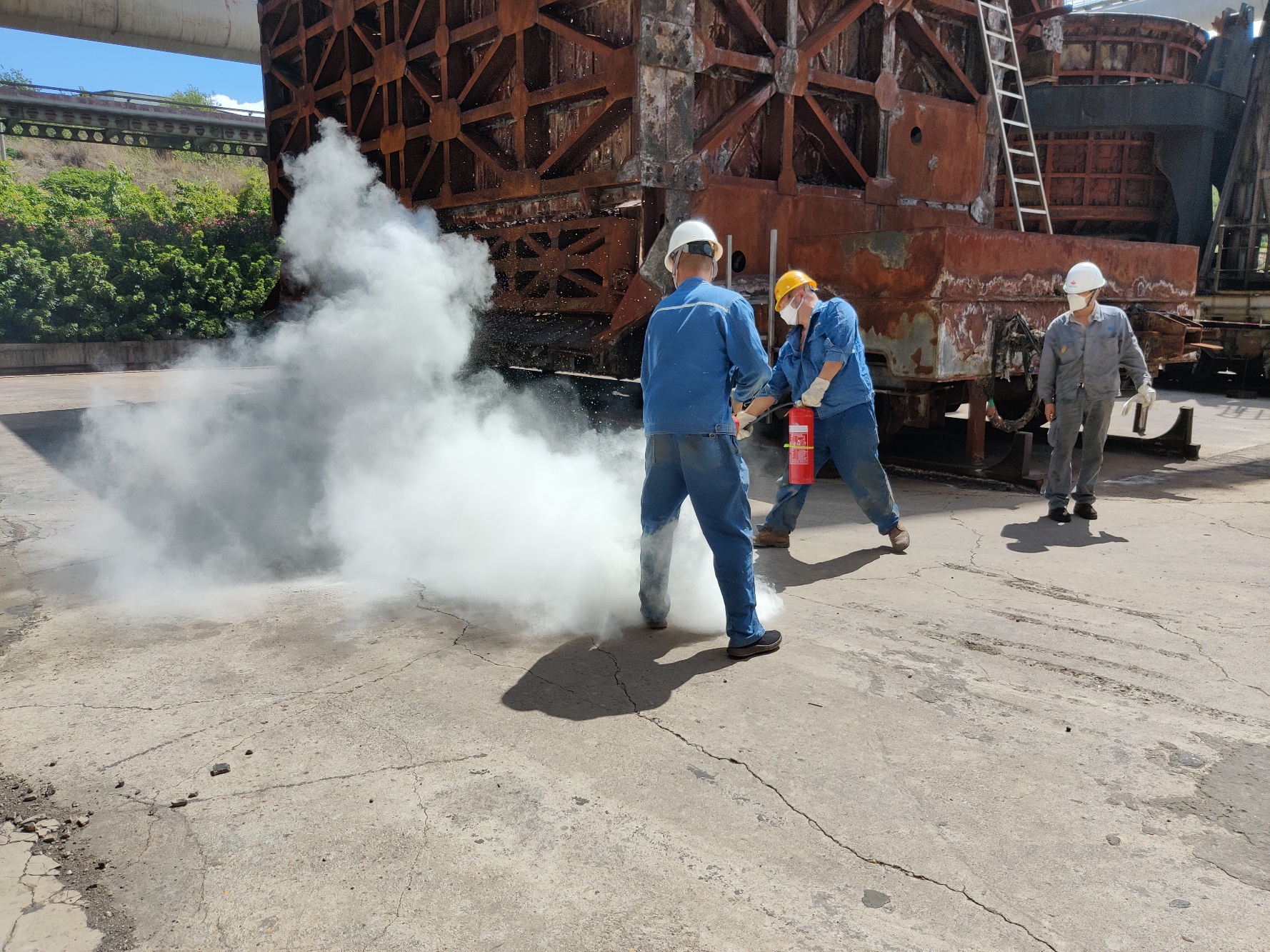 為了讓每一位員工深入了解消防應(yīng)急常識(shí),切實(shí)樹(shù)立消防意識(shí),真正掌握好火災(zāi)事故現(xiàn)場(chǎng)應(yīng)急撲救與救護(hù)的統(tǒng)籌作業(yè)流程;并具備自救互救與抗擊突發(fā)事件的應(yīng)變能力,能有組織、有順序、迅速地引導(dǎo)員工安全、快速地疏散,學(xué)會(huì)正確使用滅火器等消防設(shè)備以及掌握逃生方法。6月11日上午10點(diǎn),西昌藍(lán)鼎生產(chǎn)部長(zhǎng)孫小剛、副部長(zhǎng)王建勇、檢修班長(zhǎng)王成東,帶領(lǐng)生產(chǎn)一線人員共計(jì)11人,在二煉焦車間積極參加西鋼釩煉鐵廠組織的2020年消防演練。