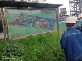 8月1日14:10分,丙班副班長段江威帶領輪崗員工,從西鋼釩智慧煉鐵主控制中心開車到3公里外的焦化煙氣脫硫脫硝現(xiàn)場。到達現(xiàn)場后,段江威首先組織輪崗員工了解了焦化廠區(qū)布置,知曉生產設備的運行狀態(tài),最主要的是結合中控操作參數(shù),更快速的掌握生產工藝,提高自身操作技能。段江威在場區(qū)布置圖前介紹了危險區(qū)域和如何安全生產規(guī)避風險,強調安全重如泰山。