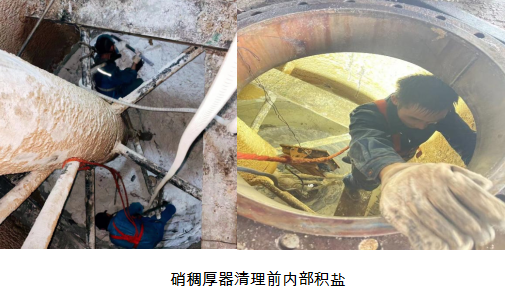 本次檢修涉及機修項目10項,電儀7項,生產(chǎn)5項,全線合計檢修項目23項。本次檢修重點項目涉及蒸發(fā)濃縮硝鹽列管清垢,硝輸送皮帶架子更換和鹽水沫除塵技改、兩級壓縮機葉輪檢查,硝稠厚器底部清理積鹽屬于密閉空間,同時高溫天氣內(nèi)部清理作業(yè)安全風(fēng)險高,容易造成人員缺氧中暑等。